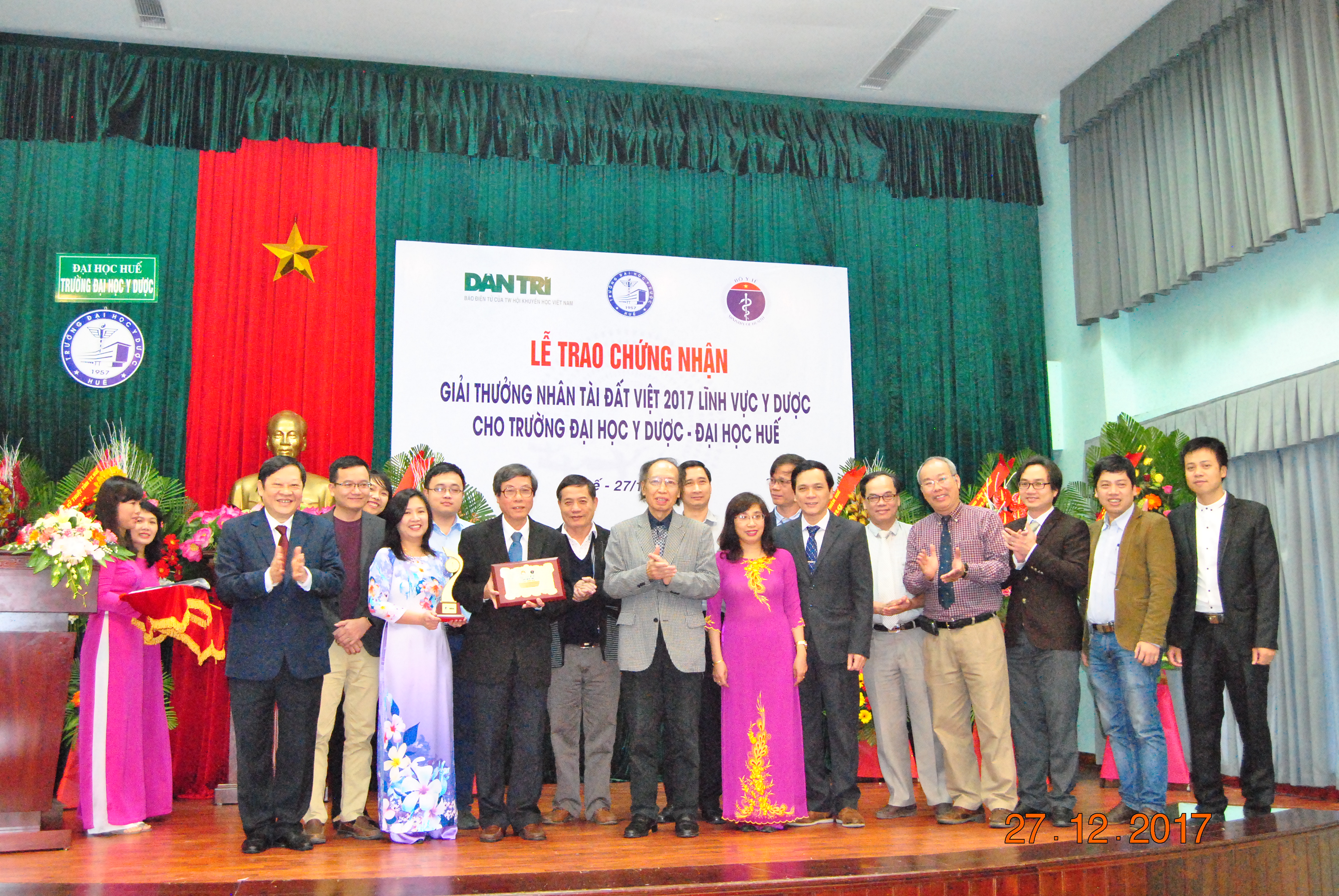 Trường Đại học Y Dược Huế nhận chứng nhận giải thưởng Nhân tài Đất Việt 2017 lĩnh vực Y dược.