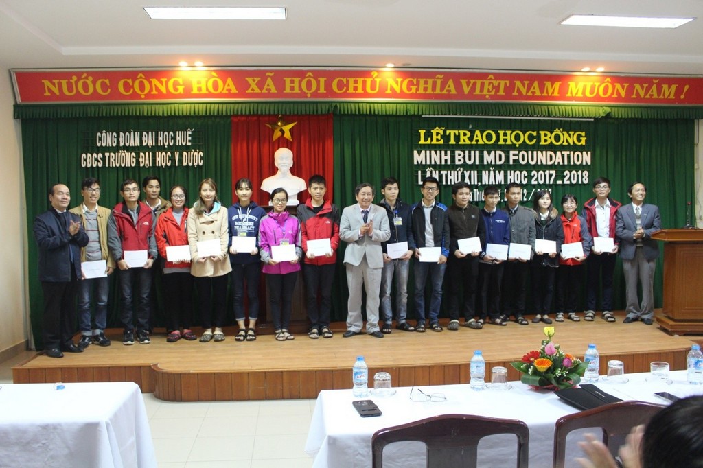 Chiều ngày 26/12/2017 Công đoàn Trường Đại học Y Dược Huế đã long trọng tổ chức trao học bổng Minh Bui MD Foundation cho sinh viên nghèo đạt những kết quả...