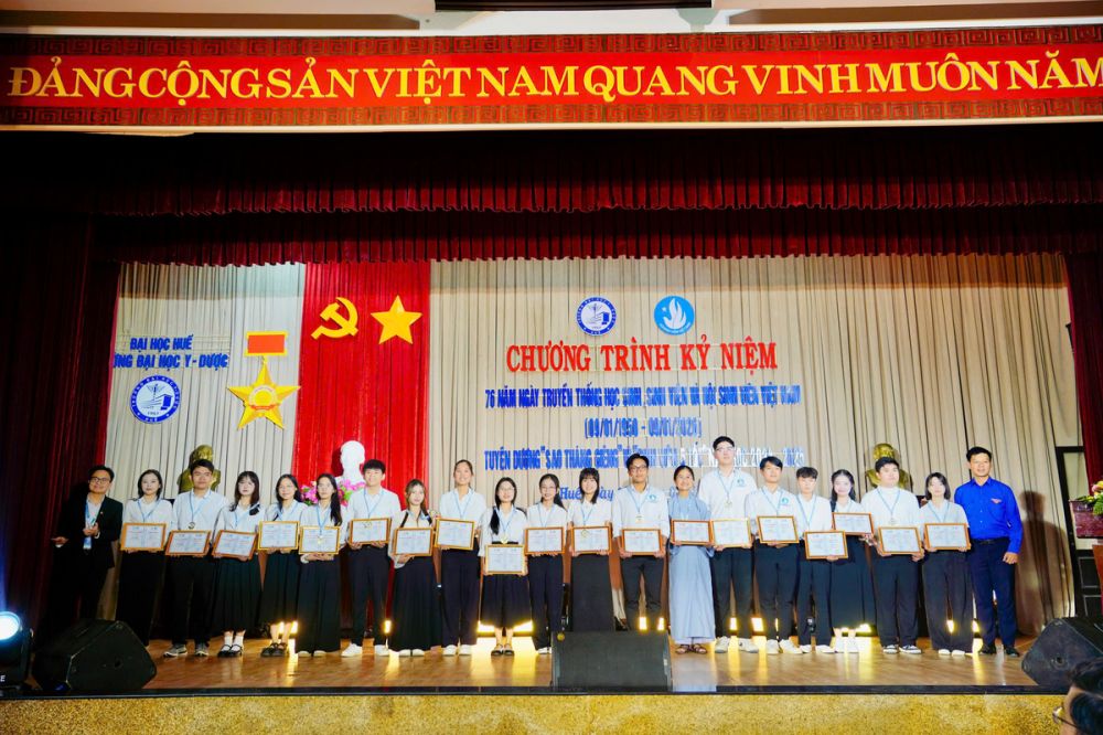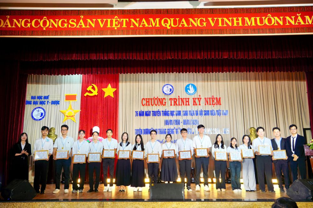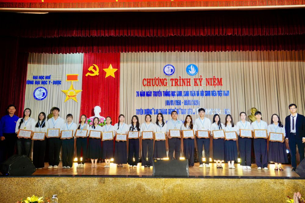 Ngày 09/01/2026 tại Trường Đại học Y - Dược, Đại học Huế, Hội Sinh viên Trường đã tổ chức Chương trình kỷ niệm 76 năm ngày truyền thống học sinh, sinh viên và Hội Sinh viên Việt Nam; tuyên dương sinh viên, hội viên đạt giải thưởng “Sao Tháng Giêng” và danh hiệu “Sinh viên 5 tốt” các cấp năm học 2024-2025.